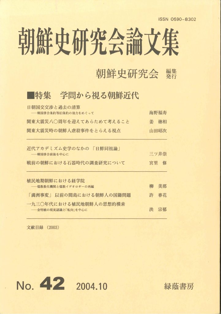 山田昭次『関東大震災時の朝鮮人虐殺事件をとらえる視点』(朝鮮史研究会編『朝鮮史研究会論文集No.42』、緑蔭書房、2004)