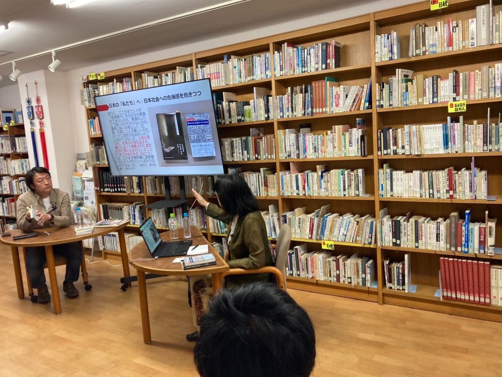 館内とオンラインのハイブリット開催でアリラン・ブックトークVol.1『韓国人権紀行 私たちには記憶すべきことがある』を開催しました。ゲストには書籍の翻訳者で東京大学東洋文化研究所教授の真鍋祐子さんをお招きしました。