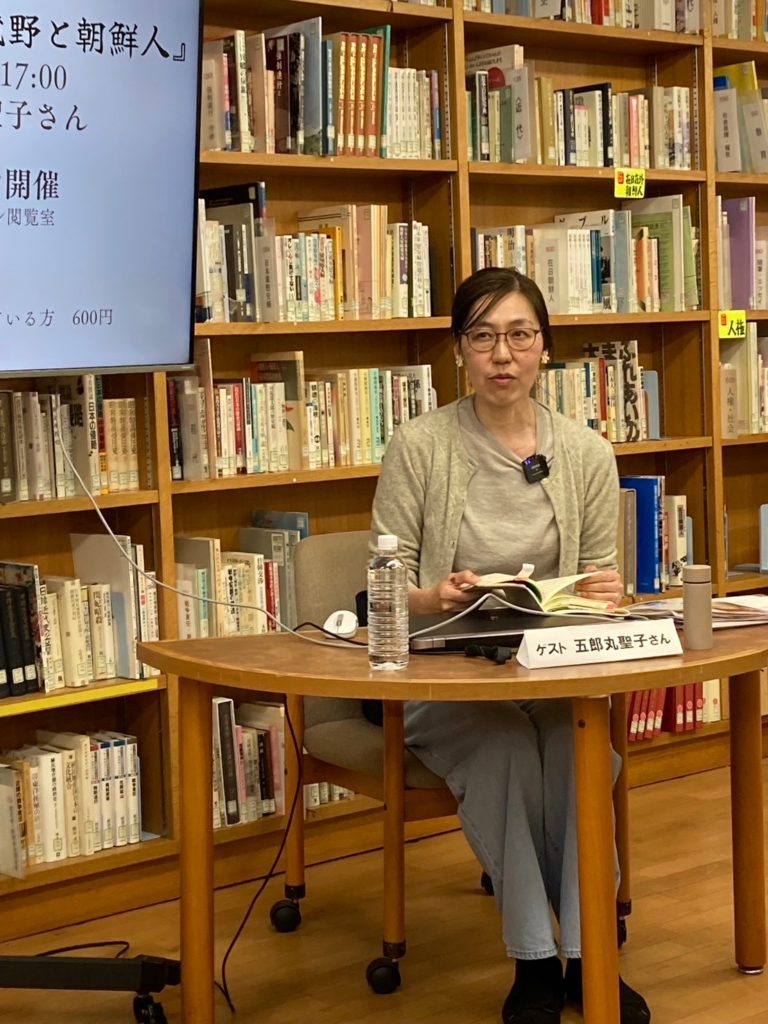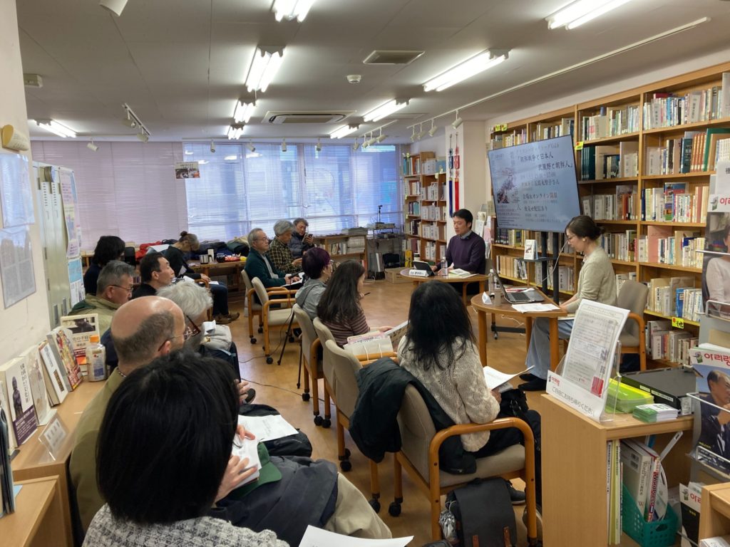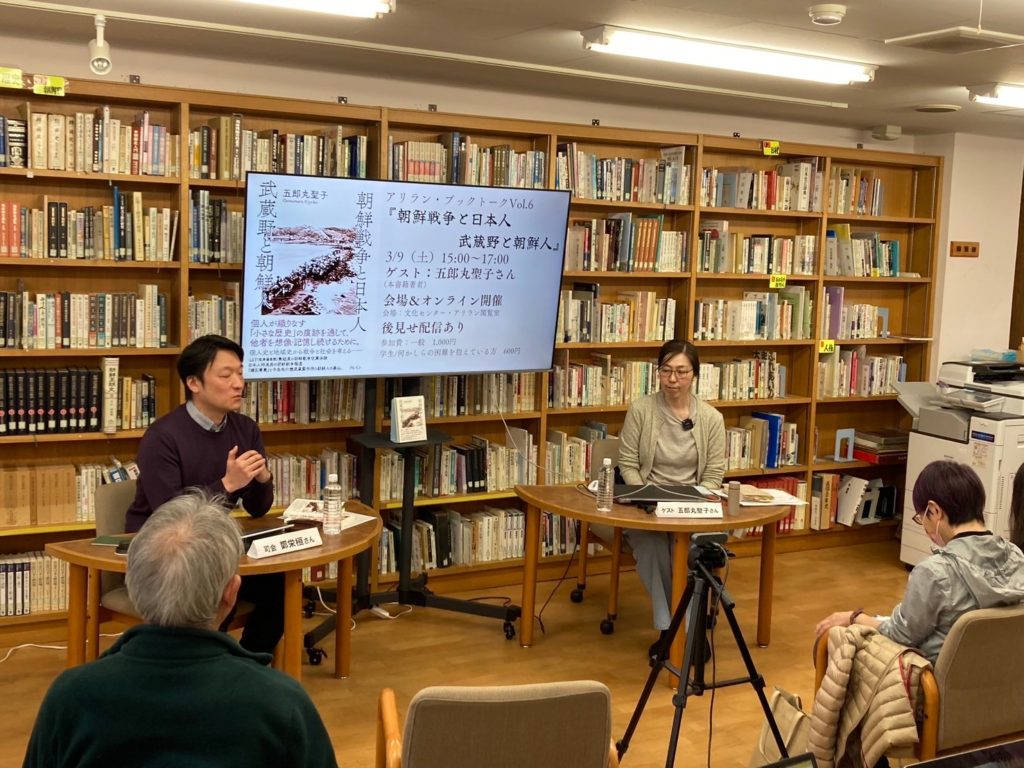 館内とオンラインのハイブリット開催でアリラン・ブックトークVol.6『朝鮮戦争と日本人 武蔵野と朝鮮人』を開催しました。ゲストには歴史研究家で本書籍著者の五郎丸聖子さんをお招きしました。会場とオンライン合わせて90名が参加しました。(2024/3/9)