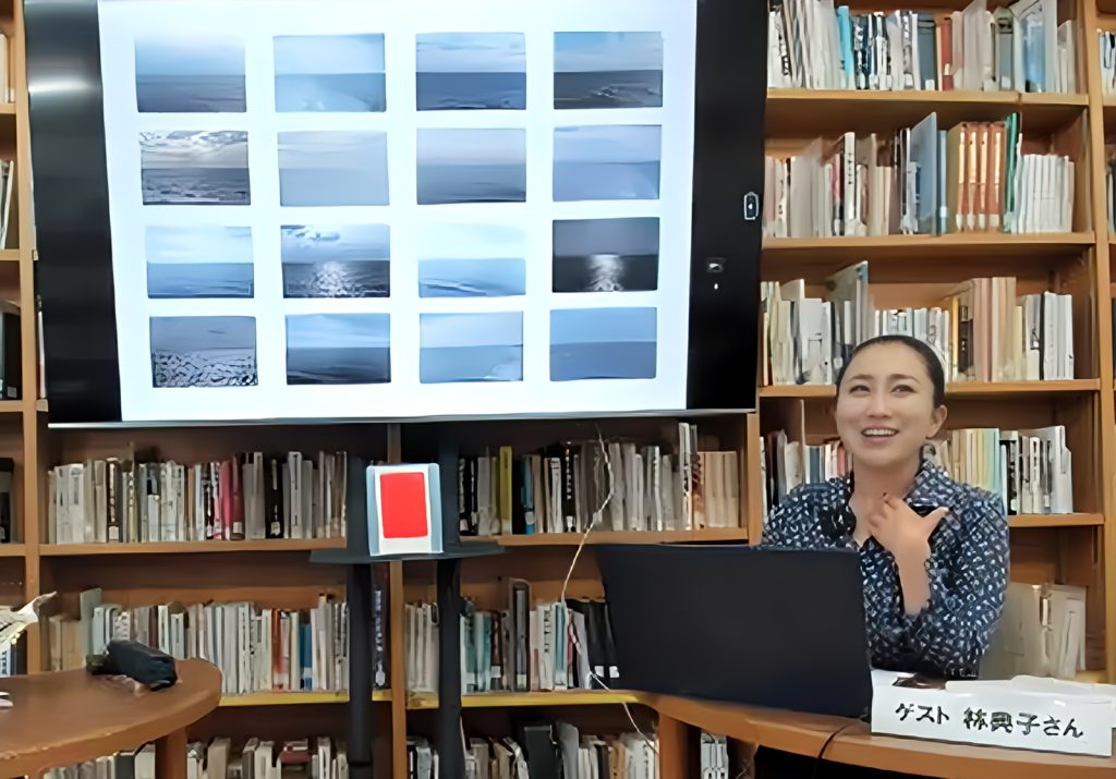 「日本人妻」の短歌を紹介しながら海について話す林さん