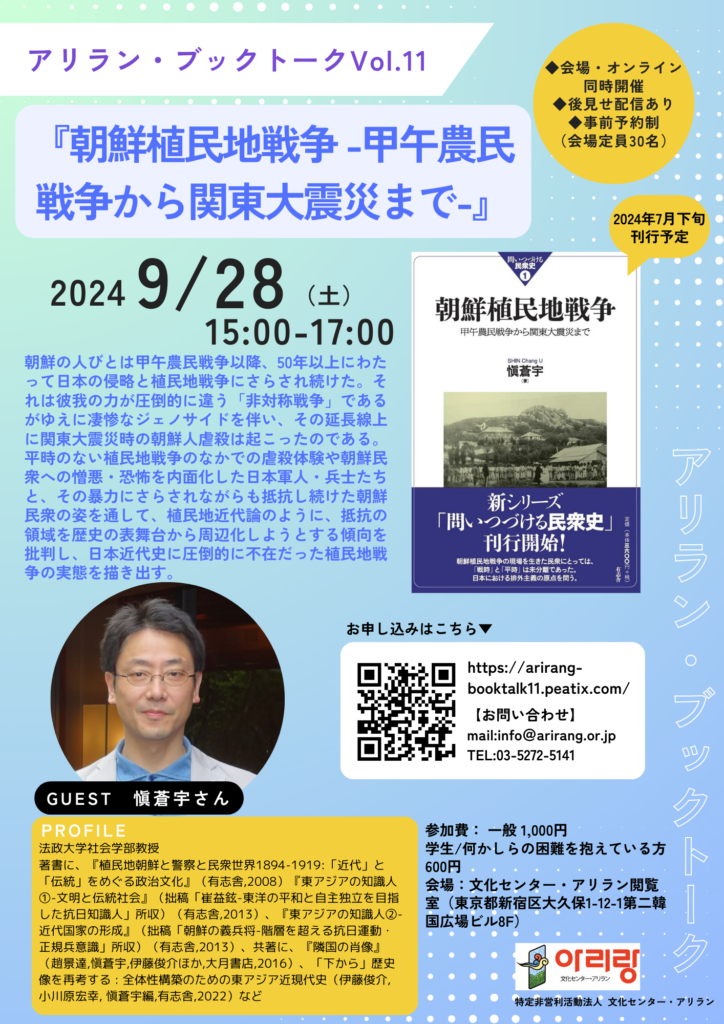 概要:朝鮮の人びとは甲午農民戦争以降、50年以上にわたって日本の侵略と植民地戦争にさらされ続けた。それは彼我の力が圧倒的に違う「非対称戦争」であるがゆえに凄惨なジェノサイドを伴い、その延長線上に関東大震災時の朝鮮人虐殺は起こったのである。平時のない植民地戦争のなかでの虐殺体験や朝鮮民衆への憎悪・恐怖を内面化した日本軍人・兵士たちと、その暴力にさらされながらも抵抗し続けた朝鮮民衆の姿を通して、植民地近代論のように、抵抗の領域を歴史の表舞台から周辺化しようとする傾向を批判し、日本近代史に圧倒的に不在だった植民地戦争の実態を描き出す。