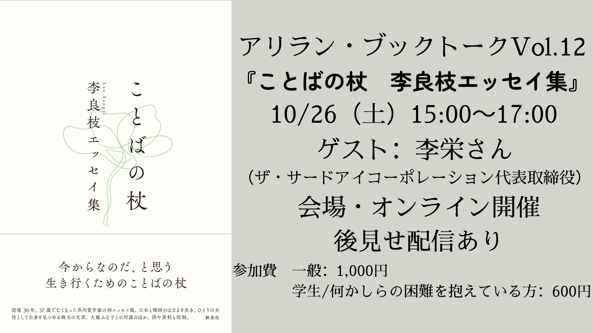 日時:2024年10月26日(土)15:00~(開場14:30)